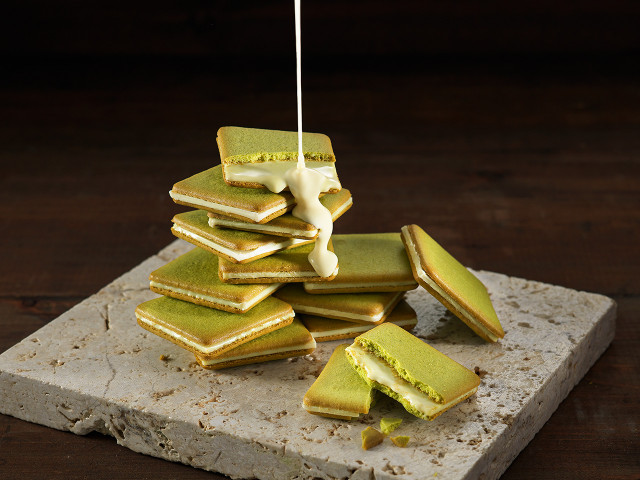 抹茶クッキーでいちごのホワイトチョコをサンド。抹茶のほろ苦さといちごの華やかな香りが、ざくざくとした食感とともに口いっぱいに広がります。
