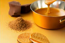ほろ苦いチョコレートクリームと甘酸っぱいいちごを口どけのよいチュイールで巻いています。