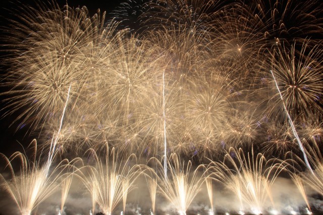 古きよき伝統を引き継ぎながら、時代の流れに合わせて進化を遂げてきたイケブンは、2015年に大曲の花火競技大会の間でもっとも権威ある大会として知られる「全国花火競技会内閣総理大臣賞」を受賞。大曲では、「ビッグバン現象と華麗なる星々」をテーマに、宇宙のビッグバン現象に散らばる煌びやかな星たちを表現。近年トレンドとなっている、時間差で光る花火を使用しました。