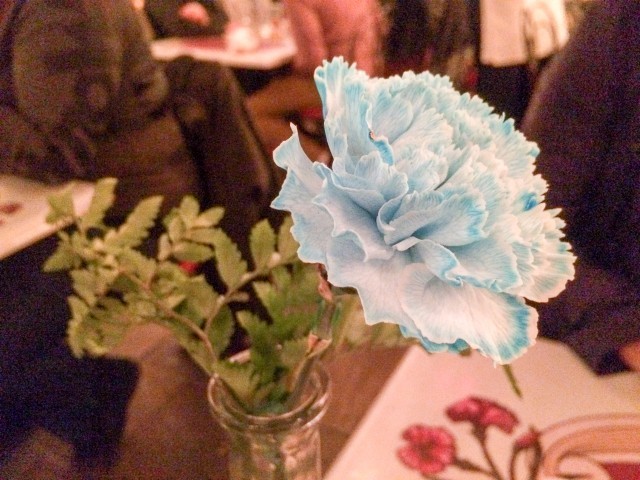 ウォルト・ディズニーも通った「カーネーション・カフェ」テーブルには、カーネーションが飾られている。