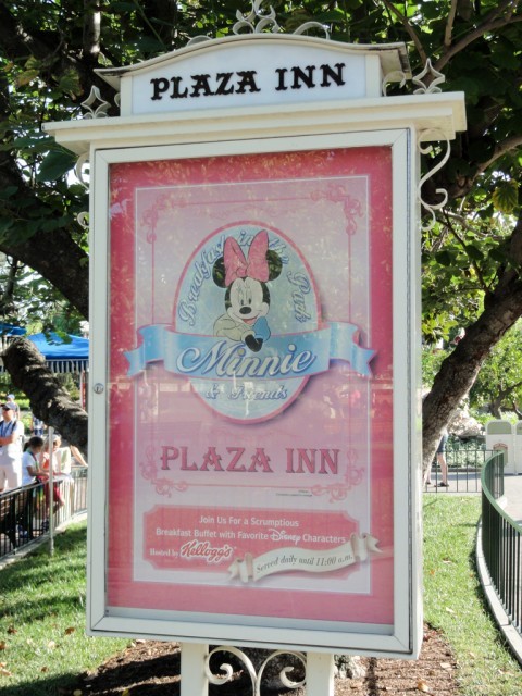 ディズニーランドにある「プラザイン」朝食のみ、キャラクターがテーブルまでやって来てくれる。予約は必須だが、当日キャンセル待ちをすることもできる。