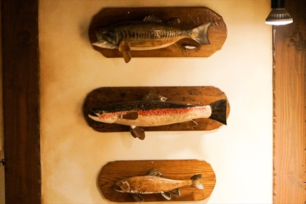 ハンバーグ屋さんなのに魚が飾ってあるんですよ?