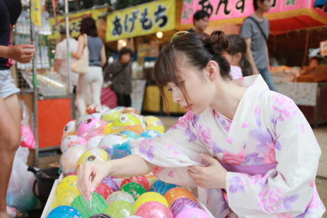 浴衣が汚れないよう、手ぬぐいやハンカチなどを膝にひろげてからいただくといいでしょう。