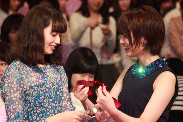 まずは、中島が「この映画を観たら……」とためた後「誰のものか忘れらんねえようにしてやるよ」と言って再び投げキスを贈ると、「キャ~~!」と大興奮。千葉も負けじと「押して。スタートボタン」という甘いセリフを投げかけ、これまた「キャ~~!」と、会場が大歓声に包まれる。