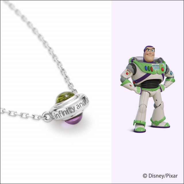 バズ・ライトイヤーは彼のカラーである緑と紫をネックレスに。