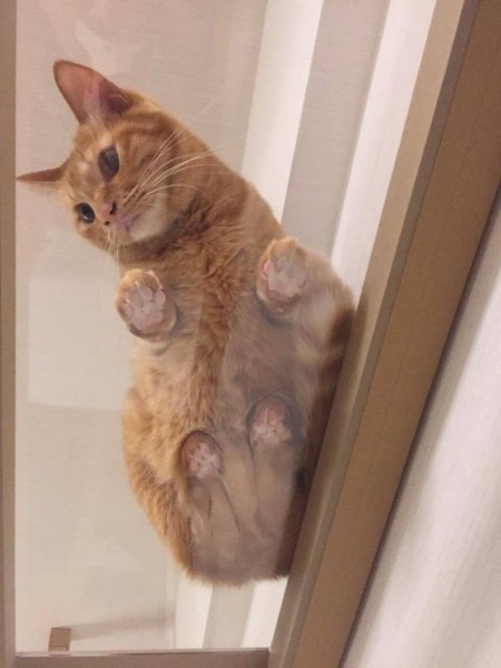 「ニャンダフルシェルフ」の一部はアクリル板になっていて、肉球がスケスケ!