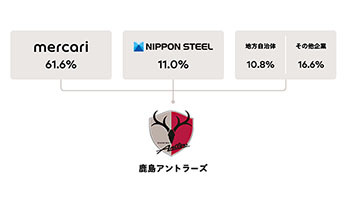 2017年4月に鹿島アントラーズとオフィシャルスポンサー契約を結んで以来、メルカリは同チームを支援してきた。株式譲渡後の持ち株比率はメルカリが61.6%、これまでのオーナー企業である日本製鉄が11.0%、地方自治体が10.8%、その他企業が16.6%。