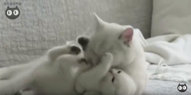 見よう見まねの毛づくろい、母の仕草に子猫は学ぶ