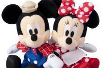 ミッキーは約22cm、ミニーは約20cmのペアぬいぐるみ。