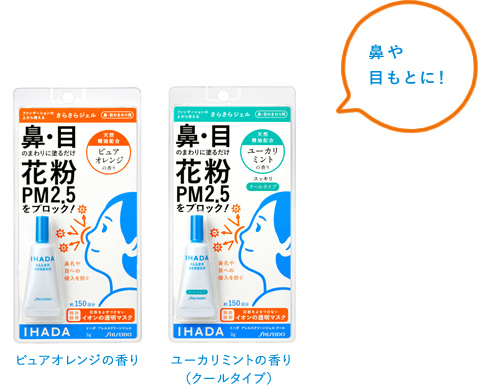 また、「イハダアレルスクリーンジェル」も使い方が簡単。鼻や目の周りにジェルを塗るだけで、ピンポイントで花粉の吸着を防ぎます。花粉やPM2.5を寄せ付けません。
