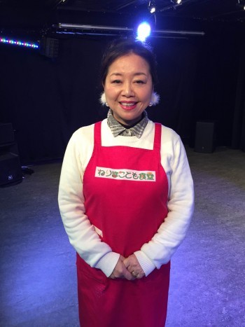 「ねりまこども食堂」代表の金子よしえさん。この日はイベントだったので華やかでしたが、いつも通りエプロンはかかせません!