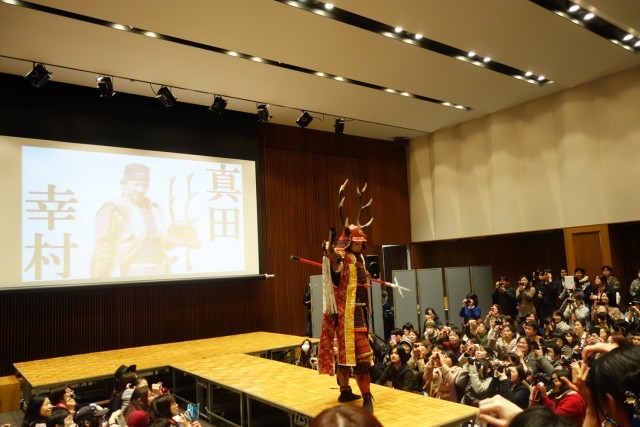 各隊の代表の甲冑や陣羽織を順に一人ずつ、こだわりのポイントなどが会場で紹介されました。