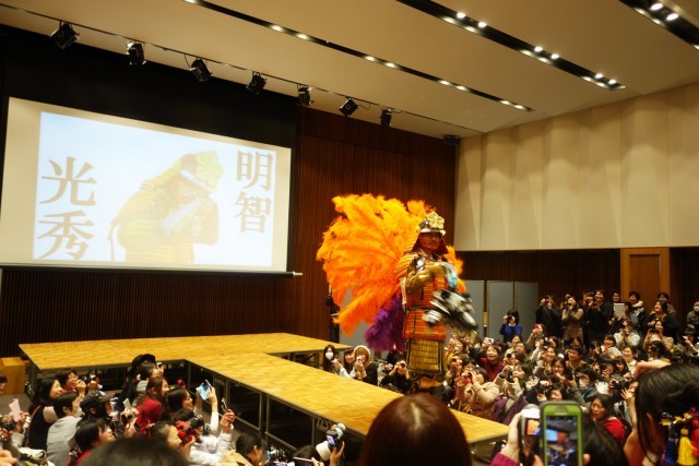 これは、甲冑や陣羽織などの戦国の装束のファッションショー!