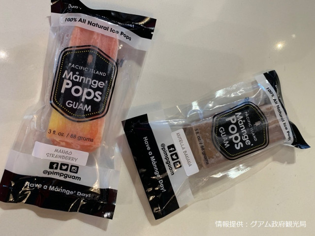 現地のコンビニなどで手に入る『パシフィックアイランドマンギポップス』は、グアム産のフルーツをたっぷりと使用した、オーガニックアイスキャンディー。