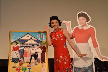「最初にお話をいただいた時は、“ホントに私でいいの?”と思いましたね。だって誰もが知ってて、皆が大好きなこの家族。泣いて、笑って、ほっこりして、50年間、本当に日本中が癒されてきたと思うので、それを私がやるの?と。ただ、家族からは“地のままやん!”と言われまして(笑)。昔から、おっちょこちょいで、よく“アンタ、ほんまサザエさんやなぁ”と言われてきたことを思い出しました。今回は“誰も知らない10年後”が描かれるということで、ワクワクしている部分が大きくて。世代を超えて心に伝わる作品を作ってくださった町子先生へのリスペクトは最大限に込めつつ、キャストの皆さんと力を合わせて、劇場に来てくださるお客さんにワクワクしてもらえるような作品を作っていけたらなと思います」と、サザエさんヘアがお似合いな藤原紀香が開口一番、笑顔で語った。