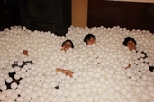 また、たまとたまの間には空間があるため、埋もれても苦しくありません! すっぽり潜ることも可能。真っ白なボールに沈むと、一見どこにいるか分からなくなります。人が多いと踏まれたり、蹴られたりすることもあるのでご注意を。