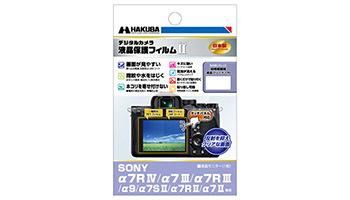 「α7R IV」専用液晶保護フィルムは、ブルーレイヤー反射防止(AR)コーティングによって視認性の高いクリアな画面を保つ。バブルレスタイプで、貼った時に気泡が自然に消える。表面硬度3Hによって、傷に強いハードコート処理となっている。撥油性フッ素系素材の採用で指紋汚れをはじくほか、シリコン粘着層の自己吸着性によってフィルムを画面に置くだけで自然に貼りつく。