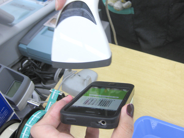 そしてとうとう店員さんの持つバーコードリーダーがiPhoneに近づいてきたのです。