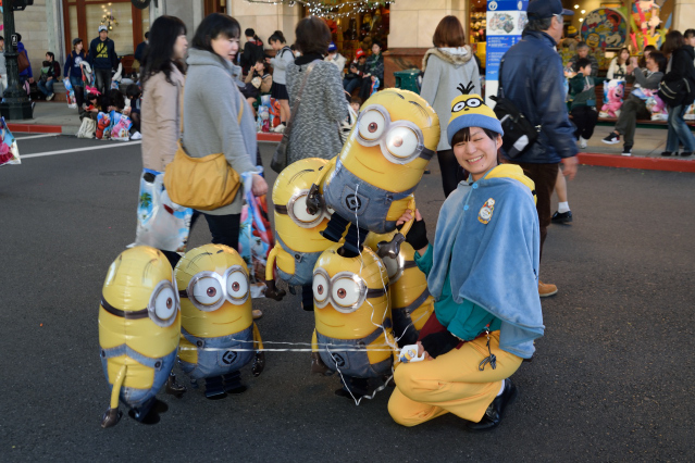 かわいいミニオンの風船を持てば、まるでミニオンと一緒に歩いているかのよう。