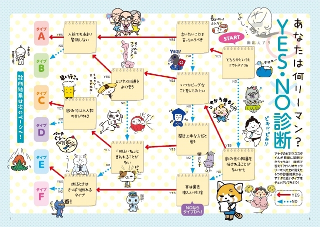 『サンリオキャラリーマンぴあ』では、「あなたは何リーマン?YES・NO診断」や、昨年秋に開催された「サンリオキャラリーマン総選挙」の結果発表を掲載。総勢24キャラクターを描き下ろし漫画付きで紹介しています。