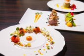 ディナーコースでは、「桜鱒とカリフラワーのサラダ スパイスの香るマンゴースフィア」や、「仔牛のグリルと牛蒡のブレゼ 山葵菜のソース 人参と味噌のディップ」など、男性でも舌鼓をうつアルコールがすすむメニューも。