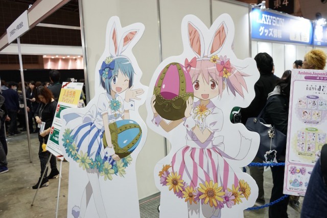 4月23日に最新作が劇場公開される「遊戯王」のブースでは、作中で登場する「青眼の亜白竜(ブルーアイズ・オルタナティブ・ホワイトドラゴン)」の巨大オブジェが展示されていたほか、先日発表された「魔法少女まどか☆マギカ」の鹿目まどかたちが可愛らしい「うさ耳」コスチュームで描かれたスタンドポップ、「うたわれるもの」に登場するルルティエ&ネコネ、「ジョジョの奇妙な冒険 第4部 ダイヤモンドは砕けない」の東方仗助といったキャラたちの等身大フィギュアもたくさん展示されていましたよ。