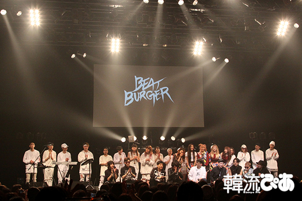 「日本での初めての公演が心配だった」というMQ(BeatBurger)は、熱狂に沸く会場と、笑顔の花に安堵の表情を浮かべ、「BeatBurgerの初めての公演。初めては一生記憶に残るしかないものです。初めての彼女。初めて学校に入学するとき。初めての就職のとき。初めてのコンサートのとき! 盛り上がっていきましょう!!」と話し、最後までフロアを揺らし続けた。