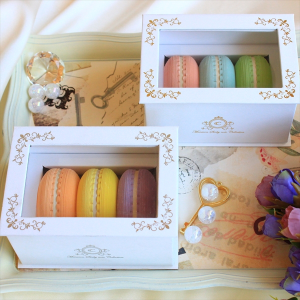 さらに、「マカロンふせん」が3つ入った箱付きのセットはプレゼント用にピッタリ。