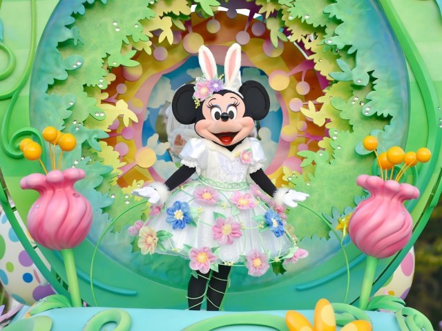 2014年と2015年「ヒッピティ・ホッピティ・スプリングタイム」のミニーちゃんは、まるでイースターガーデンのプリンセスのようなコスチュームでした。