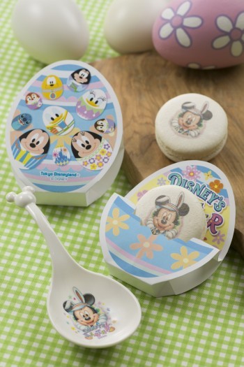 紙ケースの裏面にはイースターエッグ風にデザインされたミッキー、ミニー、ドナルド、グーフィーなどのキャラクターが勢ぞろい!