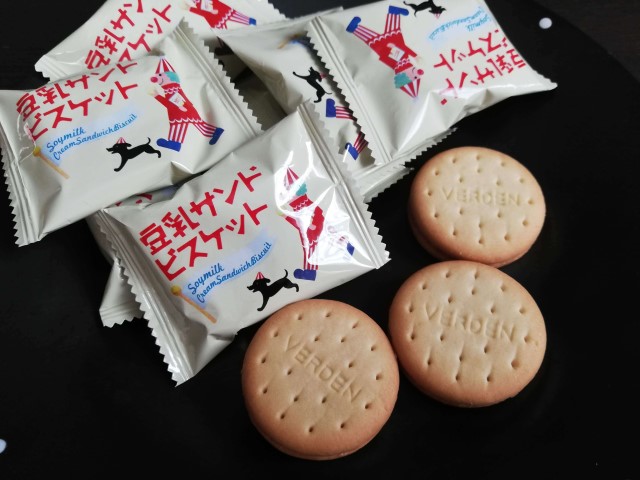 袋を開けて食べてみると、とても素朴で優しい味に癒されます。ビスケット生地も豆乳クリームも甘さ控えめなので、意外とたくさん食べられてしまいます。