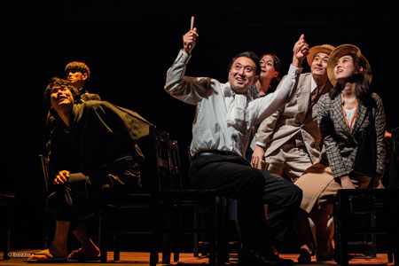 谷賢一率いるDULL-COLORED POPが現在「福島三部作」を東京芸術劇場 シアターイーストで上演中だ。谷が丁寧な現地取材を重ね、“福島”と“原発”の歴史と問題を真正面からすくい上げた意欲作。8月8日に開幕した第二部『1986年:メビウスの輪』、8月14日に開幕した第三部『2011年:語られたがる言葉たち』に続き、8月23日には第一部『1961年:夜に昇る太陽』が開幕。全3部の一挙上演も始まり、この一大プロジェクトにじわじわと注目が集まっている。福島県双葉町が原発誘致を決定するまでの数日間を描く第一部を中心にレポートする。