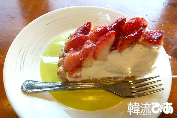 「L.BEAN」「海が見えるスターバックス」のほかに、もう一つ口コミ人気の高いカフェ「サントリーニ」もハズセマセン! 世界各国の上質なコーヒー豆のみを使用し、豆を店内で焙煎するというこだわりよう。もちろんコーヒーだけでなく、焼き菓子やペストリーも人気! イチゴタルトでお腹がいっぱい(残念!)だったので、チーズスフレ(2000ウォン)をお持ち帰りしました。