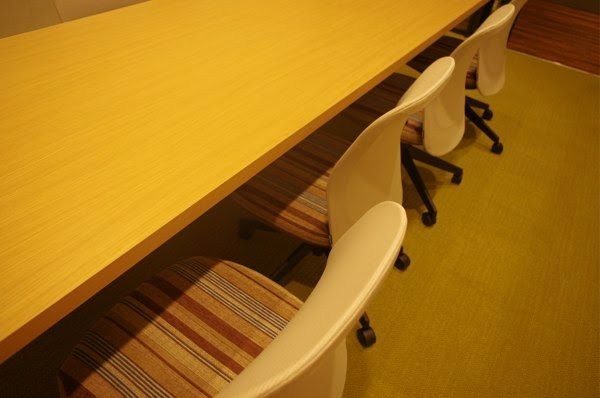 ミーティングルームにはホテルのダイニングをイメージしたスタイリッシュな部屋、最新のICTツールを使える部屋、壁紙が花柄となっている女子度の高い部屋など、シーン、目的、モード、メンバーによって選べるのが魅力。単に会議を行うだけではなく、発想豊かに臨みたい会議用の部屋など、多様な目的に応じられる部屋を設けようと意識したのだとか。壁がかわいいボーダーになっている部屋や“大人の学校”をイメージしたセミナー向けの部屋などもありました。レジデンスエリアには個人ロッカー付きのシェアテーブル(オープン席)、オフィス用の1~2名入れるブース席が用意されています。鍵付きの棚やキャビネットも完備されているので、本物のオフィスさながらです。椅子はコクヨファニチャーが昨年11月に発売した疲れにくく理想的な姿勢を維持できる「エアランバーサポート」を標準装備したオフィスチェアー「AIRFORT」を使用。長時間に渡る仕事でも安心。ショーケースは3ヶ所あり、入居者以外も展示を見ることができます。