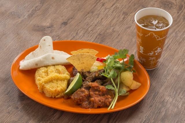 ビーフプレート(ビーフのスパイシーサルサ、ターメリックライス、トルティーヤ) ©Disney