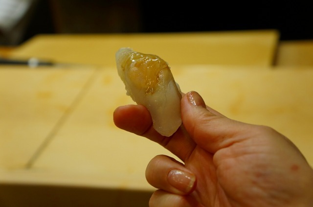 切り身に縁側と肝を挟んで握られます。今思い出してもよだれが出ます。