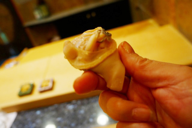 大将の使っている刀のような包丁ですが、よく鮪を解体する時に、刀より長いような包丁をテレビなんかで見かけますよね? 大将の包丁は、20年くらい使ったその鮪包丁を仕立て直したもので、鮪屋さんからプレゼントされたものなんだそうです。