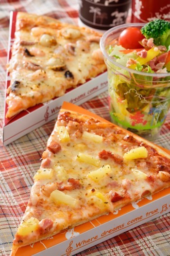 シーフードピザとベーコンとパイナップルのピザの2種類。