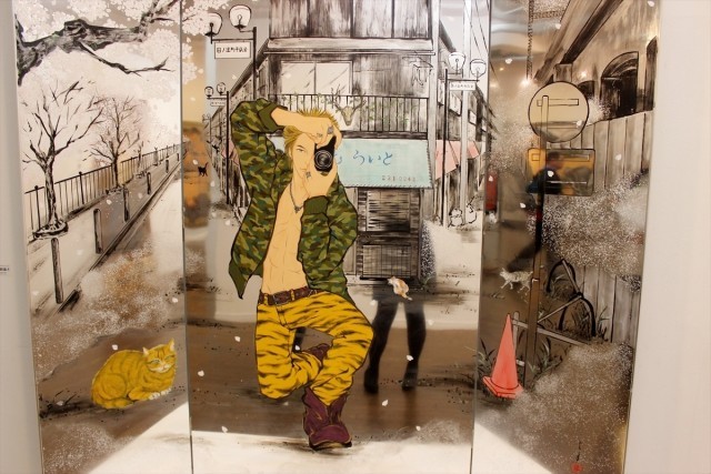 こちらを見据えるイケメンたちの前に立てば、モデル気分が味わえる。唯一、カメラマンは作品が鏡のようになっており、そこに映る自分の姿を作品としてとらえられるという仕組み。