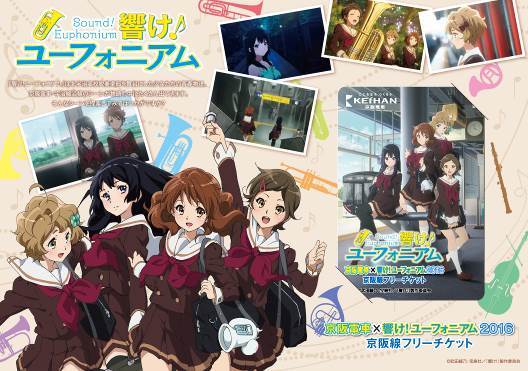 京阪線(宇治線)では13000系の車内に、キャラクターのステッカーやアニメで登場した沿線最寄のシーンなどを掲出した、ギャラリートレイン「京阪電車×響け!ユーフォニアム号2016」が登場。また、大津線(石山坂本線)で現在運転中の「響け!ユーフォニアム」ラッピング電車もデザインを一部変更して再登場するとのこと。