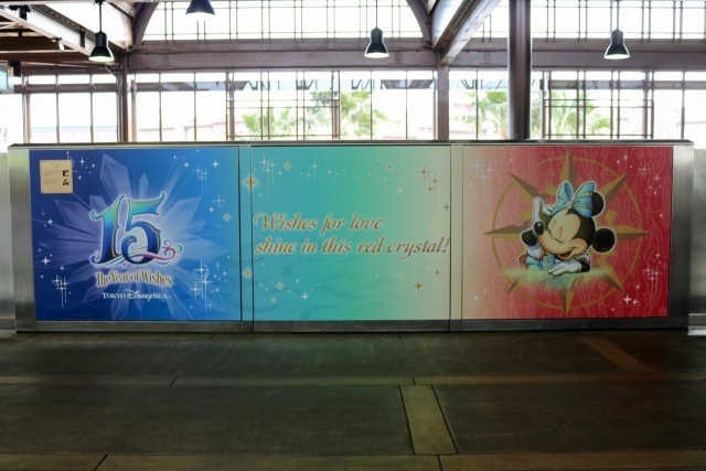 ディズニーリゾートラインの駅でも、東京ディズニーシーの15周年をお祝いしています。