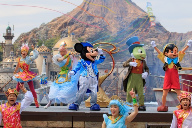 ディズニーキャラを含めた出演者数が多く、パイロ(花火)やカイト(凧)も使用された華やかなこのショー。子どもから大人まで楽しめます。