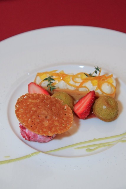 さて、あっという間にデザートになりました。デザートは「レモンタルト、カシスアイス添え」です。