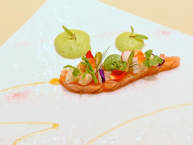 前菜でしたら、イースターバニーの耳をイメージしたものが、サーモンの上に乗ってますね。