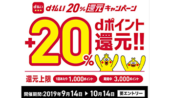 いずれのキャンペーンも、dポイントクラブへの入会とエントリー必須。d払い20%還元キャンペーンの事前エントリーは、9月9日10時に受付を開始する。