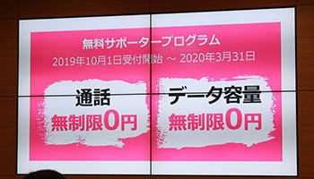 楽天モバイルは9月6日、東京・二子玉川の本社で会見を開き、10月に開始する携帯キャリア事業の詳細を発表した。5000人を対象に、「無料サポータープログラム」を実施。通話・データ容量とも無制限で、無料で提供する。期間は10月1日~2020年3月31日まで。有料の正式プランは、安定した通信を確認できたらスタートするとした。