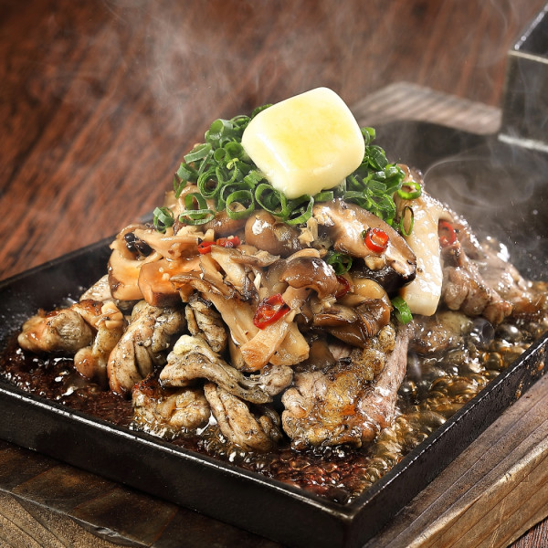 ・地鶏の希少部位炭火焼 5種のきのこたっぷりガーリックバター:980円