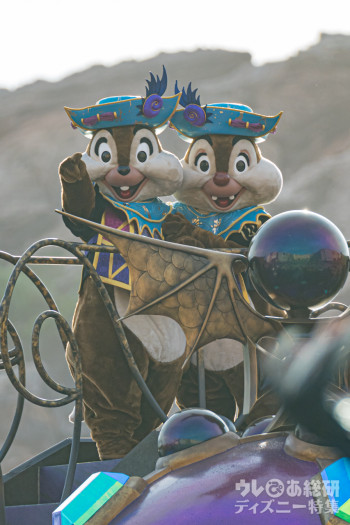 「フェスティバル・オブ・ミスティーク」には、ゲストも一緒に踊る参加ダンスシーンがありますが、チップ・デール・クラリスはバケーションパッケージ席が立ち位置になります。