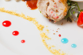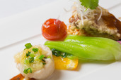 - 帆立貝の葱生姜蒸しカツオの唐揚げ 花椒ソース