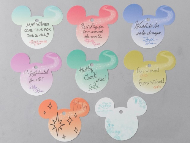 ミッキーマウスたちが願い事を書いた短冊メモ。